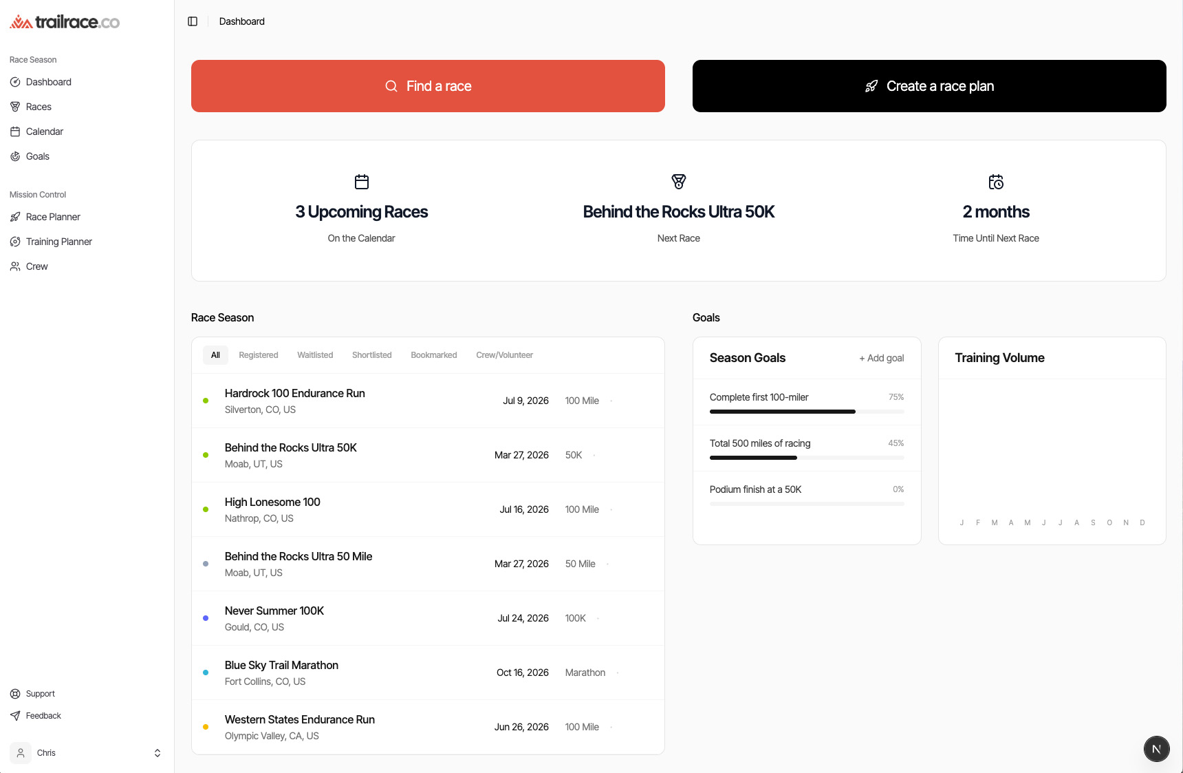 Find your next race. Build your season. Crush your goals.